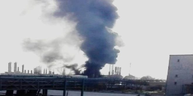 اندلع حريق في مجمع البتروكيماويات بميناء الإمام الخميني جنوب إيران اليوم.