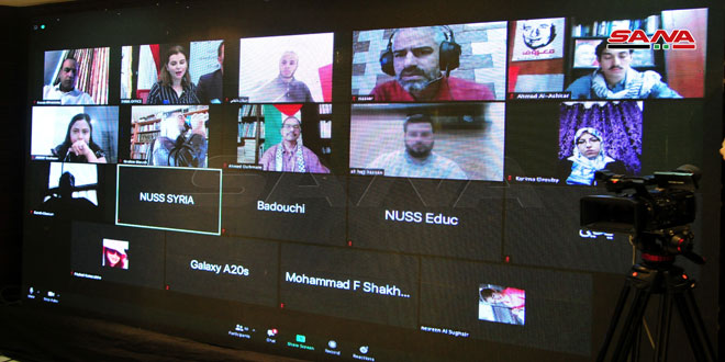 بمشاركة قيادات طلابية وشبابية عربية من 12 دولة أطلق الاتحاد الوطني لطلبة سورية اليوم “عن بعد عبر الانترنت” ملتقى طلابياً شبابياً عربياً تحت عنوان “المشروع القومي العربي ومناهضة التطبيع مع العدو الصهيوني”.