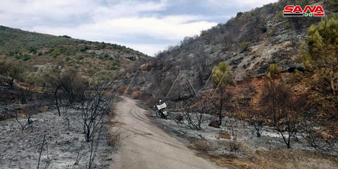 اللاذقية-حماة-سانا تستمر فرق الإطفاء في الدفاع المدني السوري وأفواج الإطفاء، وأفواج الإطفاء الحراجي، بمساندة الأهالي