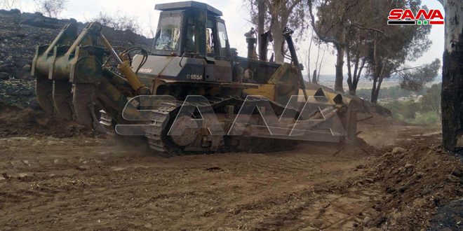 مديرية زراعة حمص تبدأ شق طرق زراعية وخطوط نار في غابة برج المكسور بريف تلكلخ التي طالتها الحرائق خلال الفترة الماضية