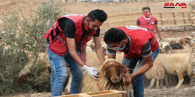 وزع مشروع تطوير الثروة الحيوانية في وزارة الزراعة بالتعاون مع فرع الهلال الأحمر العربي السوري اليوم منحة الأغنام على 100 مستفيد من أهالي بلدة عاسم بريف محافظة درعا.