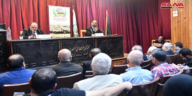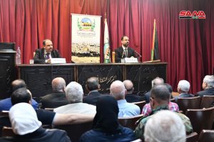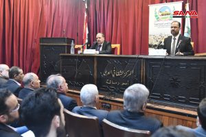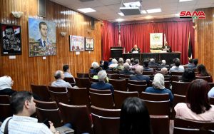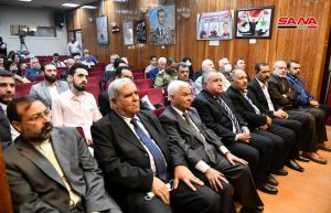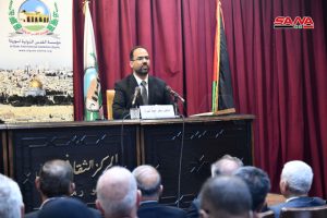 نظمت مؤسسة القدس الدولية سورية بالتعاون مع اللجنة الشعبية العربية السورية لدعم الشعب الفلسطيني ومقاومة المشروع الصهيوني وفصائل المقاومة الفلسطينية اليوم محاضرة بعنوان القضية الفلسطينية في الدراسات الاستشراقية في ثقافي أبو رمانة بدمشق.