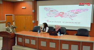 حمص-سانا ضمن الحملة الوطنية والشهر العالمي للتوعية بسرطان الثدي أقام فرع الاتحاد الوطني لطلبة سورية …