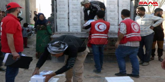 وزع فرع منظمة الهلال الأحمر العربي السوري في الحسكة 4800 حصة تتضمن مساعدات غذائية وإغاثية للأسر المحتاجة في الريف الجنوبي لمحافظة الحسكة بدعم من اللجنة الدولية للصليب الأحمر.