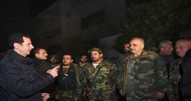 الرئيس الأسد في جوبر مع جنود وصف ضباط وضباط الجيش العربي السوري