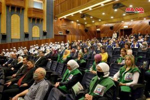 بمناسبة اليوم الوطني للبيئة وتحت عنوان “بيئتنا أمانتنا.. غاباتنا مسؤوليتنا” أقامت وزارة الإدارة المحلية والبيئة ومحافظة حماة اليوم احتفالاً مركزياً في قاعة مجلس المدينة تضمن تكريم عمال النظافة والطلاب الفائزين بمسابقة الرسوم البيئية وفقرات فنية وبيئية واستعراضية للتوعية بأهمية وقيمة البيئة وضرورة تضافر الجهود والإمكانيات الحكومية والأهلية كافة لحمايتها ورعايتها.