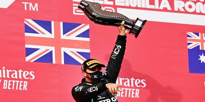 فاز بطل العالم ست مرات البريطاني لويس هاميلتون سائق مرسيدس اليوم بجائزة إيميليا رومانيا الكبرى على حلبة إيمولا الإيطالية ضمن بطولة العالم فورمولا 1 للسيارات.