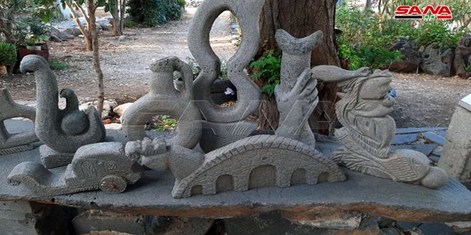 وبين الجهماني لـ سانا سياحة ومجتمع أن المنحوتات تتباين وتختلف عن بعضها فمنها ما هو تراثي يحاكي البيئة التي نعيش فيها أو عاشها أجدادنا في العصور الغابرة ومنها ما هو ثقافي.