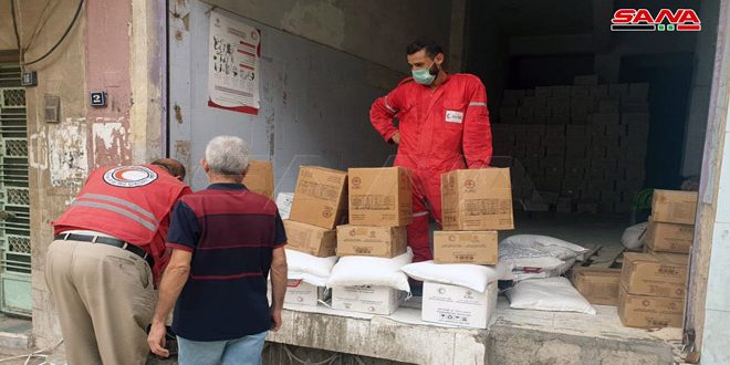 وزع فرع منظمة الهلال الأحمر العربي السوري بالحسكة مساعدات غذائية وإغاثية للوافدين إلى مدينة القامشلي من مدينتي رأس العين وعفرين بدعم من اللجنة الدولية للصليب الأحمر.