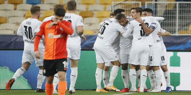 فاز بروسيا مونشنغلادباخ 6-صفر على مضيفه شاختار دونيتسك الأوكراني لينتزع منه صدارة المجموعة الثانية بدور المجموعات بدوري أبطال أوروبا لكرة القدم اليوم.