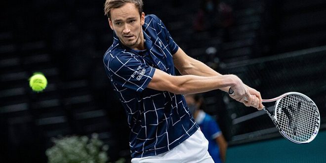 فاز الروسي دانييل ميدفيديف المصنف الثالث على منافسه الأرجنتيني دييغو شوارتزمان اليوم ليبلغ الدور قبل النهائي في باريس للأساتذة لكرة التنس.