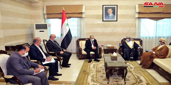 ودار الحديث خلال اللقاء حول تطوير التعاون في المجالات الاقتصادية والصناعية والتجارية والصحية والعمل المشترك بين الفعاليات الاقتصادية في سورية وسلطنة عمان بما يخدم مصلحة الشعبين والبلدين الشقيقين.