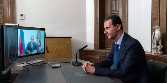 اتصال الرئيس الأسد مع الرئيس بوتين عبر تقنية الفيديو كونفرانس