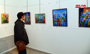 وعن المعرض قال التشكيلي عبد المعطي أبو زيد رئيس اتحاد التشكيليين الفلسطينيين في تصريح لسانا “أصبح معرض اللوحة الصغيرة تقليداً سنوياً لاتحادنا وأردنا هذا العام أن يكون مختلفاً بمواضيعه عن تلك التي نطرحها في المناسبات الوطنية بالتعبير عن التزامنا تجاه قضيتنا الفلسطينية من خلال التركيز على الجمال الفلسطيني وتعدد وجوهه من طبيعة وأزياء تراثية وبيوت وغيرها” مشيراً إلى إتاحة المجال للفنانين المشاركين في المعرض ليعبروا عن رؤاهم بكل حرية بأساليب جديدة وألوان مختلفة.