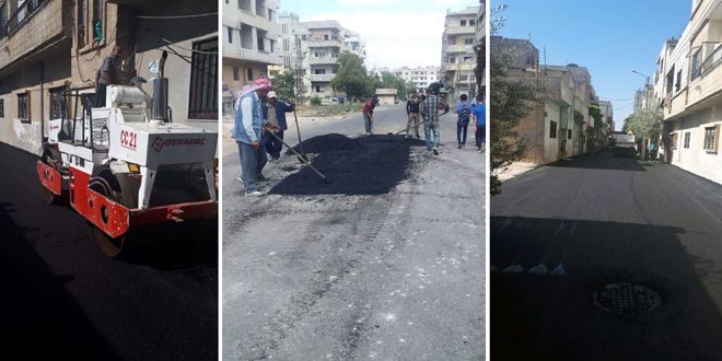 تستمر ورشات مجلس مدينة حمص بتنفيذ مشاريع تنموية وخدمية وأعمال صيانة مختلفة في أحياء المدينة البالغ عددها 50 حياً والتي تشمل الطرق والإنارة والمباني وشبكات الصرف بالتنسيق مع لجان الأحياء.