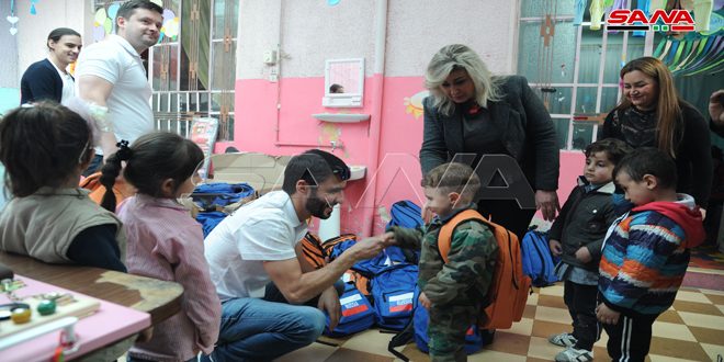 وفي تصريح لسانا بين مدير البعثة “سيرغي شيفتشوك” أن البعثة تقدم مساعدات إنسانية منذ عام 2015 تستهدف المهجرين وطلاب المدارس في سورية مشيراً إلى أن زيارتهم اليوم جاءت لدعم أطفال الروضة حيث قدمنا حقائب مدرسية وألعاب تنمي المهارات الذهنية وسرعة البديهة وتناسب مختلف الأعمار إضافة إلى ألعاب تسلية متنوعة ووجبات غذائية يستفيد منها 120 طفلاً بالروضة.
