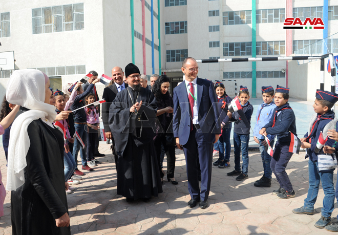 وفي سياق متصل زار نائب وزير التربية الروسي ثانوية الشهيد نبيل يونس للبنات بركن الدين التي يتم فيها تدريس 50 طالبة اللغة الروسية للاطلاع على واقع تعليم اللغة الروسية كما زار مدرسة محمد عدنان كولكلي للتعليم الأساسي في منطقة برزة برفقة عدد من علماء الدين الإسلامي ورجال الدين المسيحي للاطلاع عليها بعد ترميمها من قبل الجمعيات الدينية في روسيا الاتحادية حيث قدم طلاب المدرسة لوحة فنية تراثية راقصة تمثل تراث المنطقة.