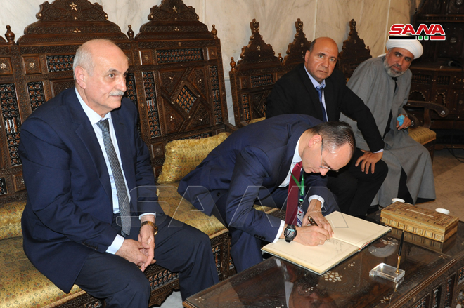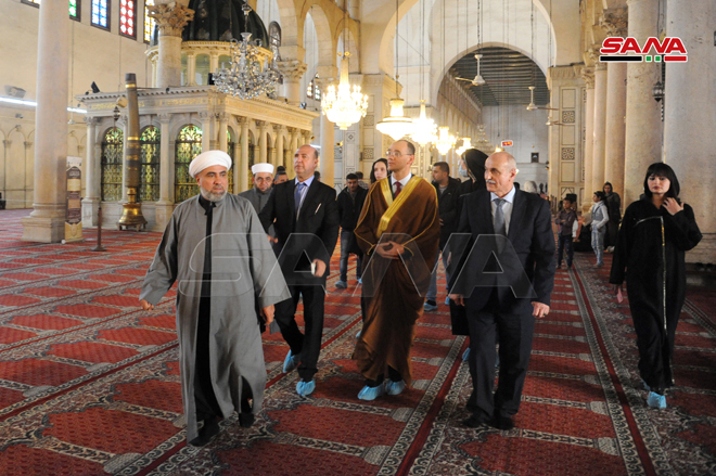 واختتم كلوشكو جولته بزيارة جامع بني أمية الكبير في دمشق الذي يعتبر من أهم المعالم الإسلامية على مستوى العالم وسجل كلمة في سجل الزوار عبر فيها عن سعادته بزيارة هذا الصرح الديني الحضاري.