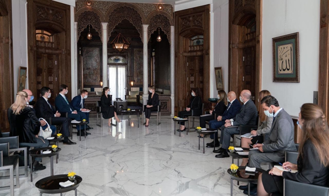 ودار الحديث خلال اللقاء حول الجهود السورية والروسية المشتركة لإخراج الأطفال الروس من مخيمي الهول والروج والتسهيلات والدعم الجسدي والنفسي والتربوي والاجتماعي لهؤلاء الأطفال الذي تقدمه الدولة السورية في هذا الشأن.