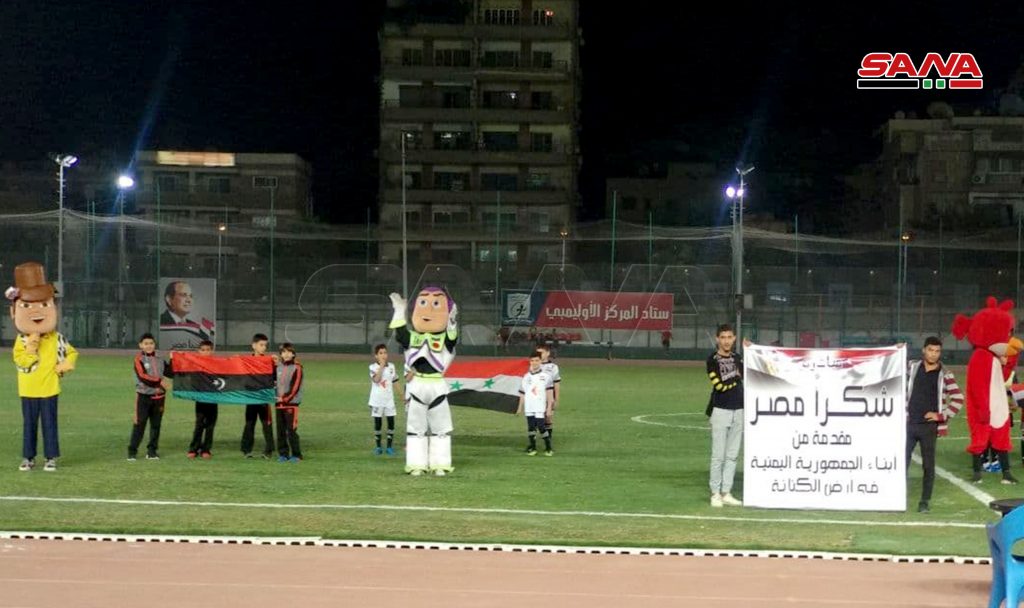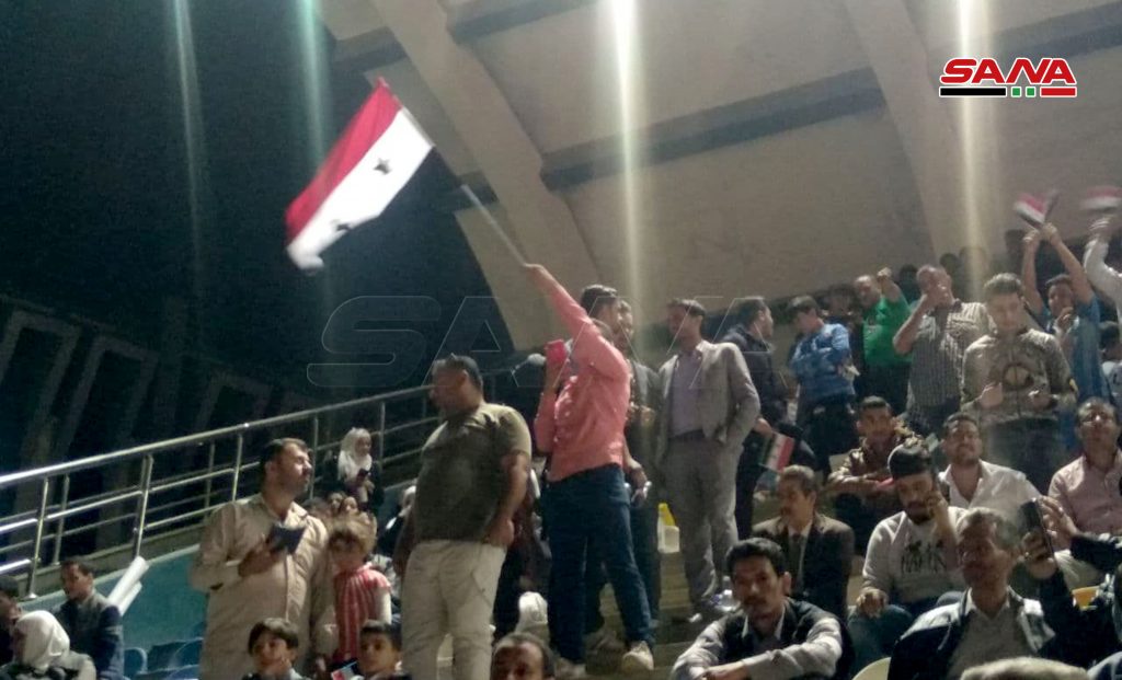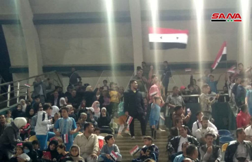 ووسط تشجيع لافت لأبناء الجالية السورية والسوريون الدارسون في مصر من فرع الاتحاد الوطني لطلبة سورية الذين حملوا أعلام الوطن أحرز الفريق السوري الفوز في مباراته الأولى على الفريق اليمني بهدفين مقابل هدف واحد.