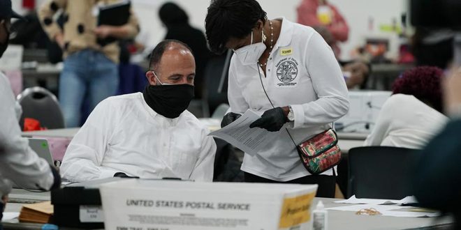 ويواصل ترامب وفريقه الانتخابي العمل على رفع دعاوى قضائية للطعن بنتيجة الانتخابات وفوز بايدن والادعاء بحدوث عمليات تزوير في فرز الأصوات في الوقت الذي كشف فيه محققون من مكتب المفتش العام لخدمة البريد الأمريكي أن موظف بريد فى ولاية بنسلفانيا اعترف باختلاق اتهامات حول وجود مخالفات في التصويت عبر البريد في انتخابات 2020.