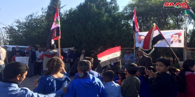 واستنكر المشاركون في الوقفة إغلاق المدارس من قبل ميليشيا “قسد” وحرمان الأطفال من حق التعليم مؤكدين أن مثل هذه الممارسات لن تثني الشعب السوري عن موقفه الرافض للاحتلال والداعي إلى الوقوف في مواجهته إلى جانب الجيش العربي السوري.