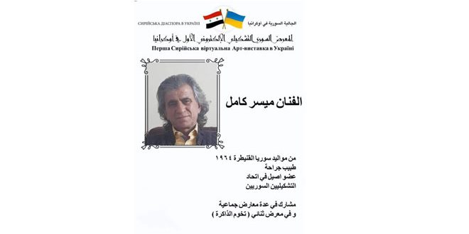يشارك التشكيلي الطبيب ميسر كامل في المعرض السوري التشكيلي الالكتروني الأول في أوكرانيا الذي تقيمه الجالية السورية هناك على موقعها الالكتروني وعبر صفحاتها على وسائل التواصل الاجتماعي طيلة الشهر الحالي وتعرف من خلاله بأعمال الفنانين المشاركين وبسيرتهم الفنية باللغتين العربية والاوكرانية.
