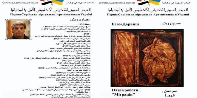 يشارك الفنان التشكيلي عصام درويش في المعرض السوري الالكتروني الأول في اوكرانيا الذي تقيمه الجالية السورية هناك عبر وسائل التواصل الاجتماعي طيلة الشهر الحالي بهدف التعريف بالفنانين المشاركين وأعمالهم باللغتين العربية والأوكرانية.