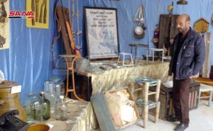 المهرجان الذي يقام بالتعاون بين مديريتي التراث في وزارة الثقافة وثقافة السويداء تضمنت فعاليات يومه الأول افتتاح معرض للتراث المادي في صالة قصر الثقافة بإشراف ربيعة غانم وإخراج تيسير العباس ضم عشرات القطع والأدوات التراثية التي جمعها العباس ومنها أطباق القش والمطرزات وأدوات الطعام والمياه والإنارة والمكاييل القديمة والصناعات اليدوية.
