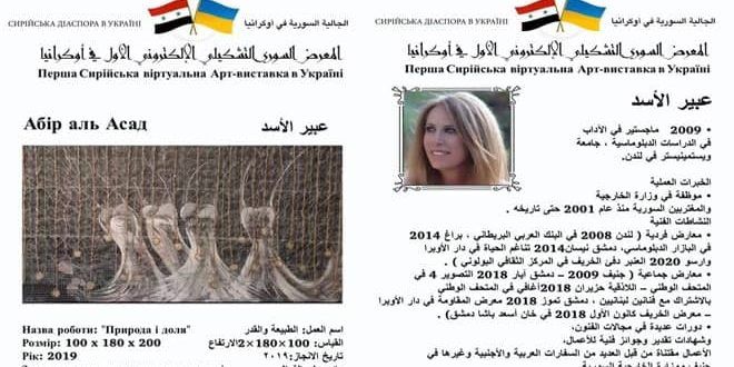 يذكر أن المعرض السوري الالكتروني الأول في أوكرانيا يقام على الموقع الرسمي للجالية السورية هناك وعلى صفحاتها على مواقع التواصل الاجتماعي طيلة الشهر الحالي.