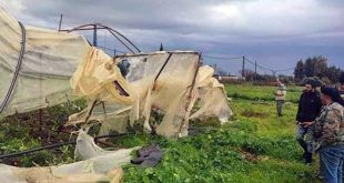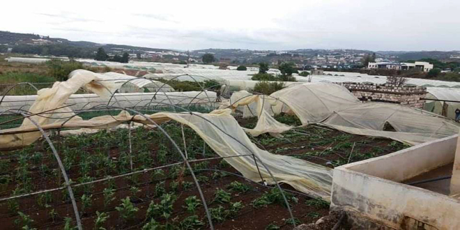 المزارع هيثم حنا وهو أحد المزارعين الذين تعرضت زراعاتهم للضرر قال إنه يملك 20 بيتاً بلاستيكياً مزروعة بالبندورة وهي في العقد الثالث والرابع أي أنها على وشك الإنتاج وقد تضرر 14 بيتاً منها بشكل كامل فيما تعرض الباقي لضرر يقدر بنسبة نحو خمسين بالمئة مشيراً إلى أن هذه البيوت تؤمن فرص عمل لثلاث عائلات تعمل لديه بالزراعة إضافة إلى كونها مصدر رزق له ولعائلته أيضاً.