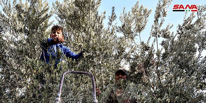 من قطاف الزيتون في قرية قمحانة بريف حماة الشمالي