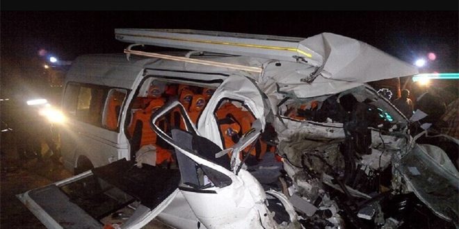 لقي 12 شخصا مصرعهم وأصيب 5 آخرون بجروح جراء حادث تصادم حافلتين على الطريق الصحراوي الشرقي في محافظة المنيا وسط مصر الليلة الماضية.