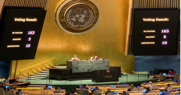 وتم اعتماد القرار بناء على توصية اللجنة الثالثة للجمعية العامة بأغلبية 163 صوتاً فيما عارضه كيان الاحتلال الإسرائيلي وأربع دول فقط في حين امتنعت 10 دول عن التصويت.