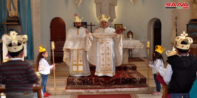 وتلا القداس تقديم الألعاب وتوزيع الهدايا على الأطفال حيث أوضح الأب زيادة لمراسل سانا أنه أقام العيد اليوم الجمعة عوضاً عن الأحد القادم ليتمكن الأطفال من المشاركة فيه وليدخل الفرحة والبهجة إلى قلوبهم.