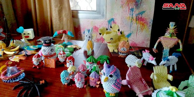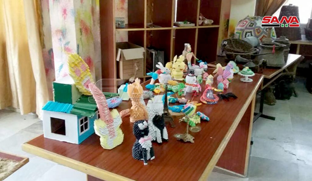 وتضمنت الاحتفالية معرضين أولهما للتراث بإشراف حسن سليمان والثاني لفن طي الورق”الاوريغامي”تنفيذ فريق ثقافة الطفل في المركز بإشراف أمل علي التي بينت أن المعرض تضمن مجسمات لأشكال متنوعة من الأزهار ولبعض الطيور المحببة للأطفال كالبجعة قدمها مشاركون متوسط أعمارهم 13 عاما مشيرة إلى أن هذا الفن يعطي طاقة إيجابية ويحتاج إلى الإبداع ويعلم الصبر ويحتاج إلى التقنية والحرفية ولا سيما في المجال الهندسي.