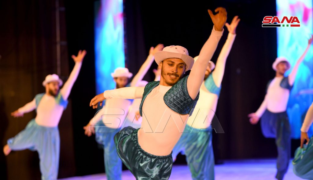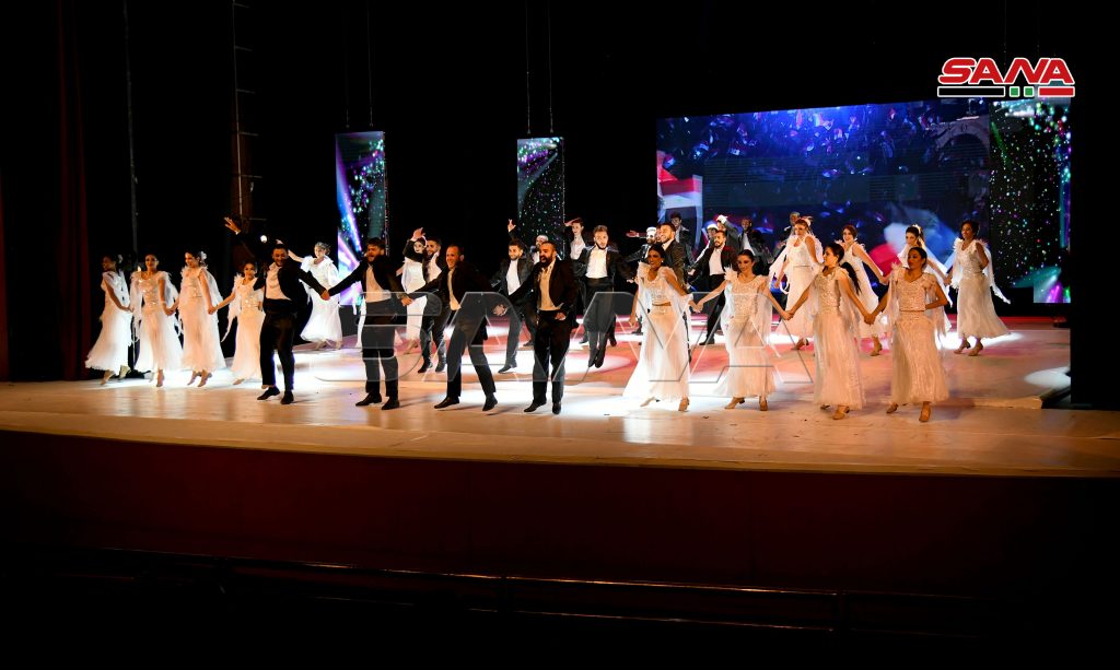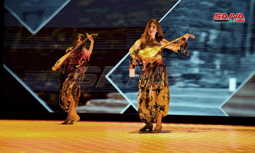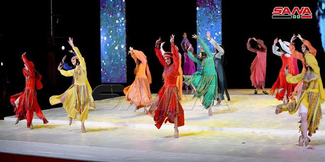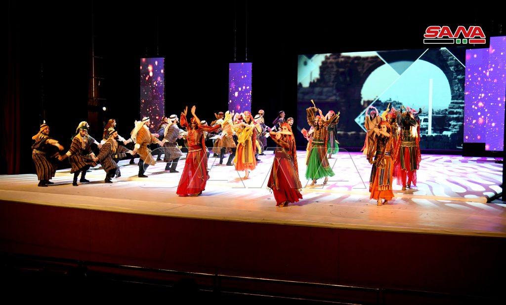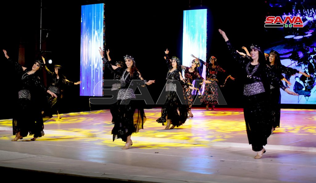 وأدت فرقة جلنار للمسرح الراقص عدة لوحات تصميم علي حمدان على أنغام أغنيات تراثية سورية ترافقت مع مشاهد مصورة من مختلف ربوع البلاد لتختم فقرتها بلوحة تعبر عن قوة سورية وإرادة شعبها بإعادة الإعمار وتجاوز أهوال الحرب.