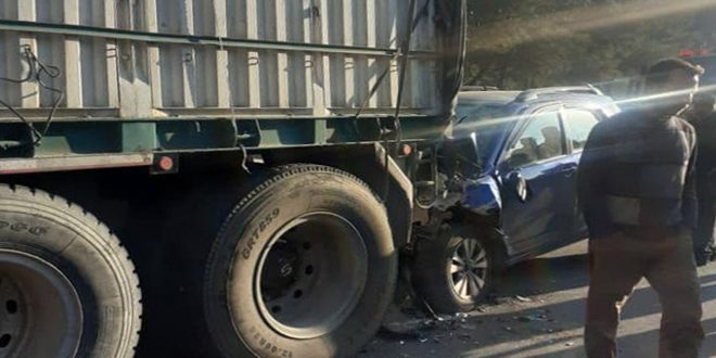 وذكر العميد غياث عاقل مدير فرع الدفاع المدني بحمص لمراسل سانا أن الحادث ناجم عن اصطدام سيارة سياحية مع شاحنة نقل كبيرة مشيرا إلى قيام عناصر الفرع بالتعاون مع شرطة الطرق بتأمين الطريق وإسعاف سائق السيارة إلى مشفى الباسل بحي الزهراء بمدينة حمص لكنه فارق الحياة فيما بعد.