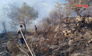 أخمد عناصر الحراج بالتعاون مع فوج الإطفاء والأهالي حريقاً نشب في وادي فهد بين قرية الرقيق ومزرعة الجمق التابعة لبلدية شريفا بريف اللاذقية.