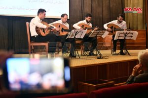 وشكل المعرض فرصة ليقدم رباعي العود السوري قدرات عازفيه الأكاديمية خلال حفل أقيم في مدرج المكتبة مؤكدين عبره أن تراث الأجداد يصونه الأبناء بطريقة تجمع الأصالة والحداثة معاً لأن هذا الرباعي الذي أسسه الموسيقي محمد عثمان عام 2014 ظهر كفكرة مقتبسة عن الرباعيات الوترية الموجودة في أوروبا ويضم أربعة أعواد ثلاثة منها ضمن الحد الطبيعي والرابع هو عود (باص) يصل لطبقات منخفضة للحصول على مساحة صوتية أكبر تخدم الأهداف الموسيقية وتحقق لوناً جديداً.