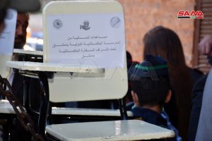 وزار السفير الباكستاني مع محافظ اللاذقية مدرسة العفاف للتعليم الأساسي بمدينة اللاذقية التي استقبلت جزءاً من المقاعد المدرسية واطلع على عدد من الصفوف فيها.