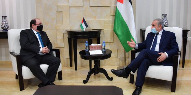 وأوضح اشتية خلال لقائه ممثل جمهورية سلوفاكيا لدى فلسطين جوزيف هودي في رام الله اليوم وفق وكالة “وفا” أن الاحتلال ومستوطنيه يواصلون انتهاكاتهم بحق الفلسطينيين ويستولون على أراضيهم بهدف توسيع عمليات الاستيطان تنفيذاً لمخططات الضم الرامية إلى تصفية القضية الفلسطينية.