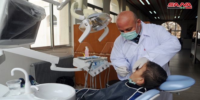 الدكتورة غنوة صدقني طبيبة أسنان في المركز بينت أنها تقدم خدمات وقائية وعلاجية للأطفال من عمر 6 سنوات وما قبل إضافة إلى البرامج التوعوية حول الأسنان التي يقوم المثقفون الصحيون بتقديمها لهذه الفئة من خلال جولات ميدانية على المدارس مبينة أن المخبر التابع للمركز ينتج مادة الفلور الطبية بكل أشكالها ويوزعها على المحافظات ومضامض الفلور لتوزيعها على المدارس.