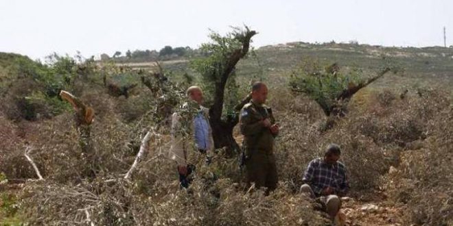 اقتحم مستوطنون إسرائيليون اليوم أراضي الفلسطينيين شمال شرق رام الله في الضفة الغربية وقطعوا مئات الأشجار المثمرة.