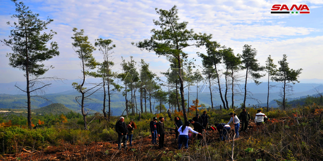 شارك 70 طالباً وطالبة من جامعة حلب بزراعة نحو 2000 غرسة خرنوب وصنوبر ثمري خلال حملة التشجير التي أقيمت بجبل الحرة التابع لناحية ربيعة في ريف اللاذقية الشمالي ضمن برنامج الرحلة الترفيهية التي نظمها الاتحاد الوطني لطلبة سورية بالتعاون والتنسيق مع وزارتي السياحة والزراعة والإصلاح الزراعي.