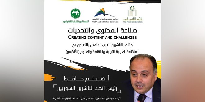 يشارك اتحاد الناشرين السوريين في مؤتمر الناشرين العرب الخامس الافتراضي الذي سينطلق غدا تحت عنوان “صناعة المحتوى والتحديات” ويستمر لمدة يومين.