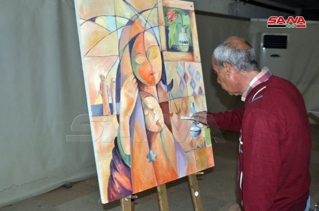 وتضمنت اللوحات موضوعات من وحي الثقافة والهوية السورية تعكس في جانب منها بيئة السويداء وتنوعت فيها الأساليب بين الواقعي والتجريدي والتعبيري بألوان الزيتي.