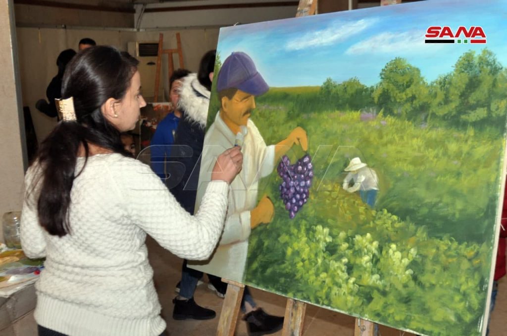 أما الفنانة رشا قطرب التي شاركت بلوحة عن قطاف العنب من المدرسة الواقعية فأعربت عن سعادتها للمشاركة لأنه تجربة جديدة قدمت لها طاقة إيجابية وتعرفت على زملائها وأساليبهم المختلفة.