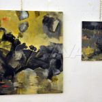 من جهته التشكيلي خالد الحجار أوضح أنه اشتغل على الهوية التي يقدمها بشكل دائم بمزج الجنس البشري بين الرجل والمرأة عبر ثلاثة أعمال تعبيرية.