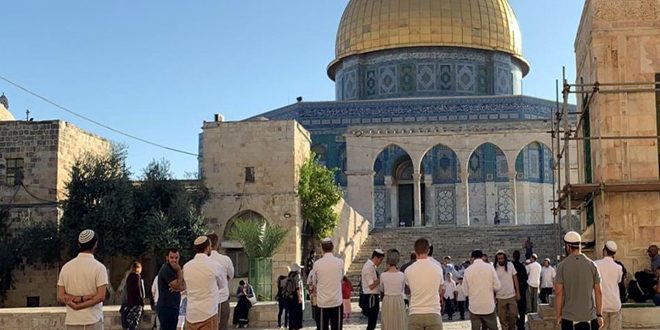 وذكرت وكالة وفا أن 59 مستوطنا اقتحموا الأقصى من جهة باب المغاربة ونفذوا جولات استفزازية في باحاته بحراسة مشددة من قوات الاحتلال.